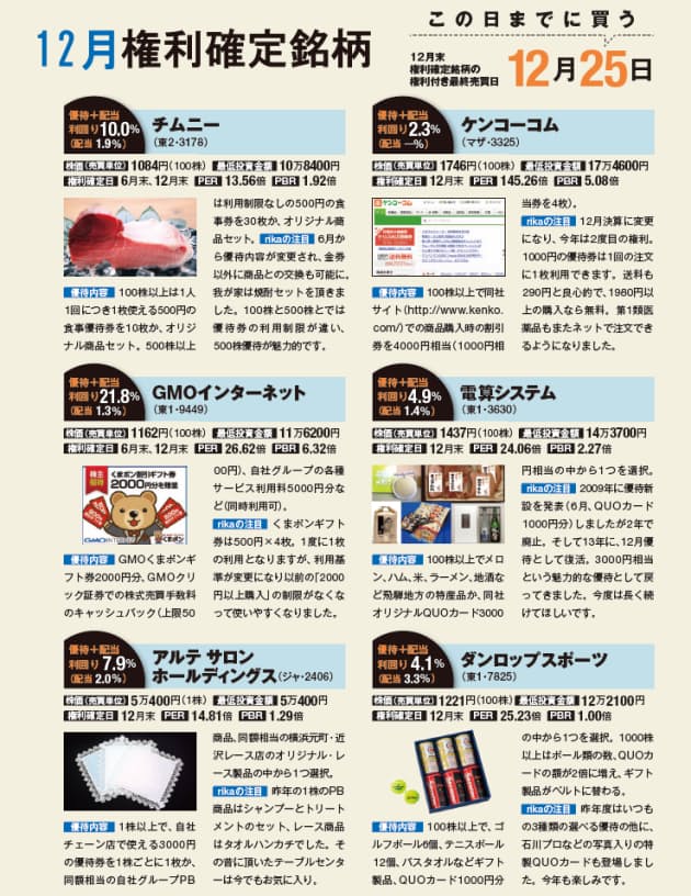 10万円以下で買える 12月の株主優待利回りランキング 株主優待 All About